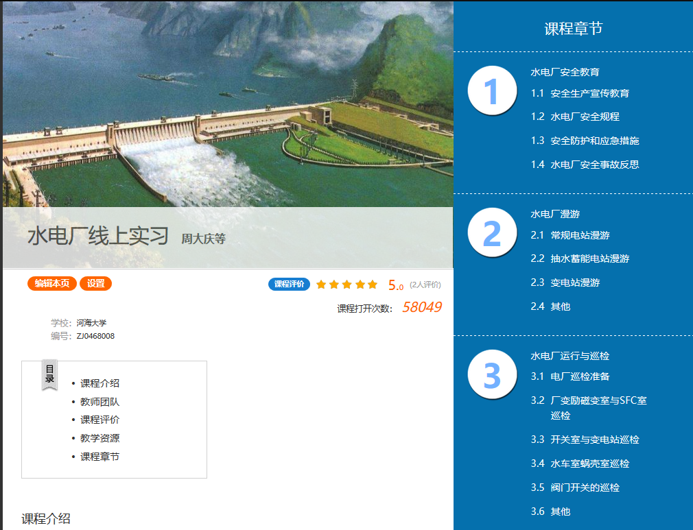 一场突如其来的疫情不仅打乱了正常的教学秩序,也让学生正常的实践实习变得遥不可及。为了保证学生的课程有质量、实习有新意,能源与博彩网 及时组织骨干教师对开学即将面临的教学和实践实习工作进行了研讨和预判,充分考虑学期实践实习的多变因素,未雨绸缪,精心筹建,建立了一支由多专业教师参与的实习“金课”团队,利用河海大学课堂在线网络教学平台,历经2个月时间完成整体课程的搭建、模拟、调试和试运行,让“水电厂线上实习”课程在线上“活”起来。整个课程主要分为“水电厂安全教育”、“水电厂漫游”、“水电厂运行与检修”、“水电厂主机设备安装与拆卸”、“水下航行器虚拟仿真”五大主体板块以及补充板块“水电厂工作生活花絮”。各大主体板块不仅提供了相关内容的基本文本和图片介绍,更通过虚拟仿真、三维漫游、线上随堂测试、师生线上互动的方式来形象介绍和巩固水电厂相关知识要点,学生足不出户就可以完成实践实习!