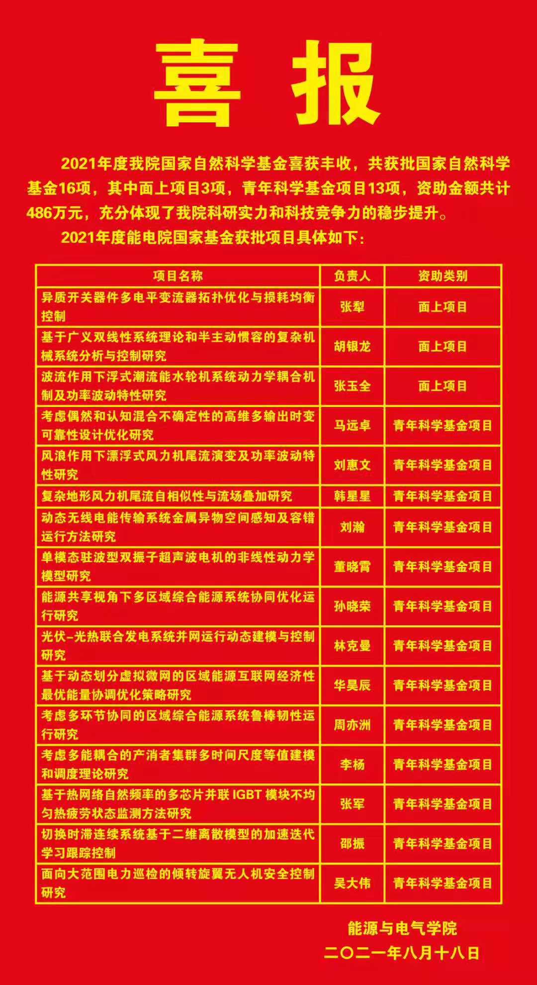 喜报-2021年度博彩网 国家自然科学基金喜获丰收