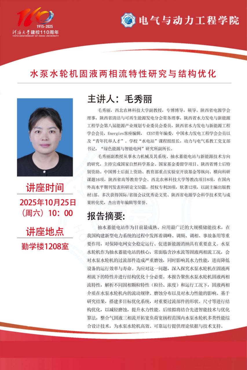 学术报告:水泵水轮机固液两相流特性研究与结构优化