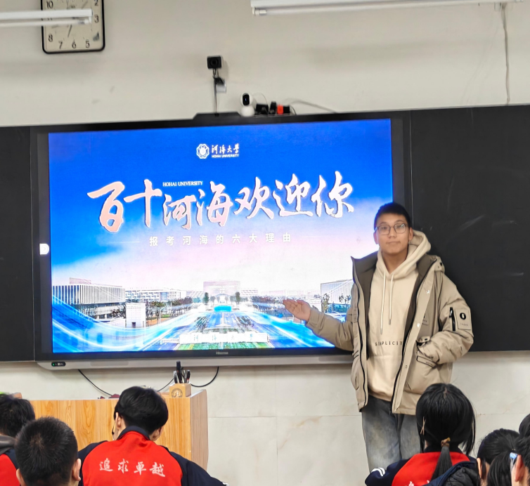 为响应河海大学“源泉工程”寒假实践号召,博彩网 宁晋县第一中学宣讲团重返母校,通过PPT讲解、视频展示及宣传材料发放,向高三学子全方位介绍河海大学的发展历程、办学特色与学科优势。团队成员重点推介了水利等传统优势学科及电气、信息等新兴工科,展示了大禹学院培养体系、国际交流项目及本科生升学就业成果,同时通过丰富的校园生活剪影,呈现河海大学在学术科研、文体活动等方面的优质平台。