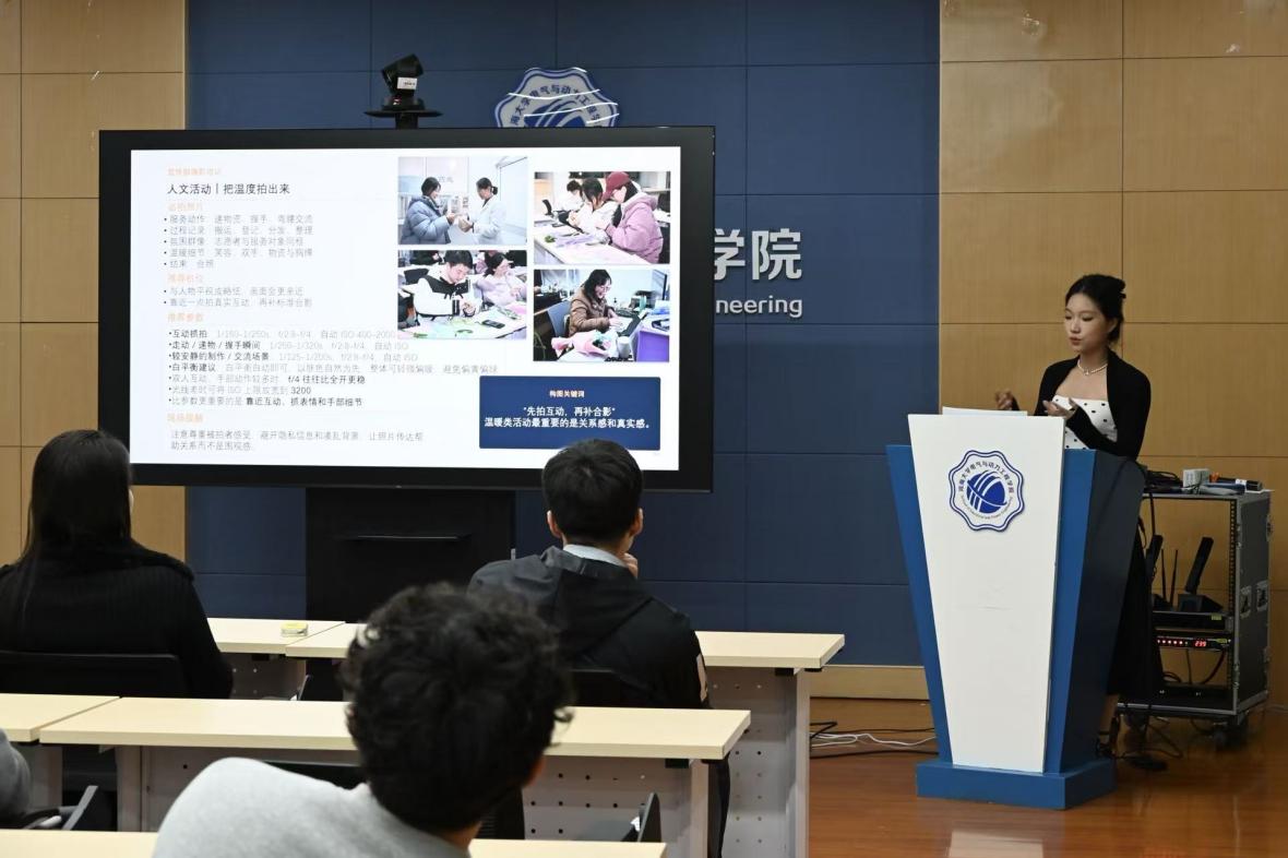 摄影专题培训由宣传部部长周康馨主讲,聚焦研会活动中最常遇到的会场汇报类、体育活动类和人文活动类场景的拍摄技巧。培训强调活动摄影先保清晰,再求完整,以远中近景结合合影的思路拍全素材,后期做好画面校正与色调统一。通过培训,研会成员们对于摄影技巧有了更加深刻的理解,为后续活动宣传打下了扎实功底。